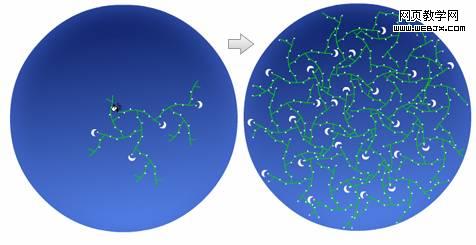 (8)在影片剪輯“球體”上點擊生成藤蔓式圖形,如圖1-7所示。
