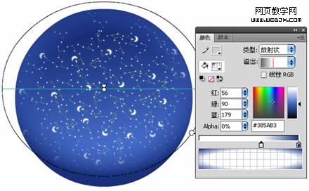 (13)新建一個圖名為“光影”,繪制水晶球的高光和陰影,復制一份與“球體”一樣的圓填充“放射狀”漸變,色值為: