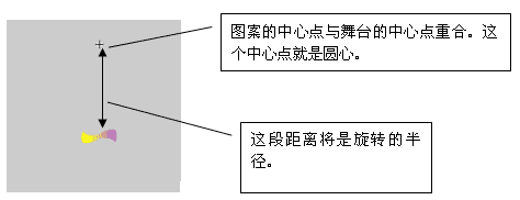 2. 繪制“圖案”時,應注意將圖形偏移舞臺的中心點一定的距離,并把圖案的中心位置移到舞臺的中心點處,如圖2所示