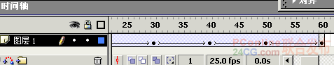 1. 回到主場景中。把庫中的“射線動畫”拖到場景中央。右鍵單擊第1幀,在彈出菜單中選擇“創建補間動畫”命令創建補間動畫。接著分別點選“圖層 1”中的第10、20、30、40、50、60幀并按F6鍵插入關鍵幀。如圖11所示。