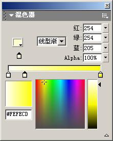 3.新建一圖形元件“字符光亮”,在第1幀處插入一關鍵幀,使用文本工具,其相關設置與第2步一樣,在工作區中輸入同樣的文本,并使用分離命令將輸入的文本分離,然后打開混色器面板,進行如圖3所示的設置: