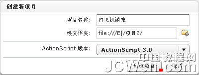 2、點(diǎn)擊右邊的第一個三角按鈕(項目),在下拉菜單中選"新建項目"。在彈出新建項目面板項目名稱:填入項目名稱。在根文件夾:項中點(diǎn)擊右邊的瀏覽按鈕,瀏覽到準(zhǔn)備存放項目的目錄,按確定。在ActionScript版本:選ActionScript 3.0 。單擊"創(chuàng)建項目"按鈕,這樣項目就建好了。圖:項目面板