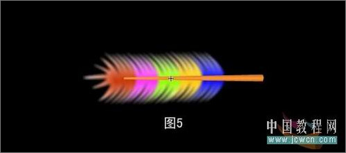 7、新插入圖層二,改名稱為扇柄,利用矩形工具畫出一個填充色為線型,左右色標:#CC6600,中色標:#FEA64E,把矩形調整成合適的形狀,再放置在羽毛的合適位置,到此扇片就制作完畢。如圖5: