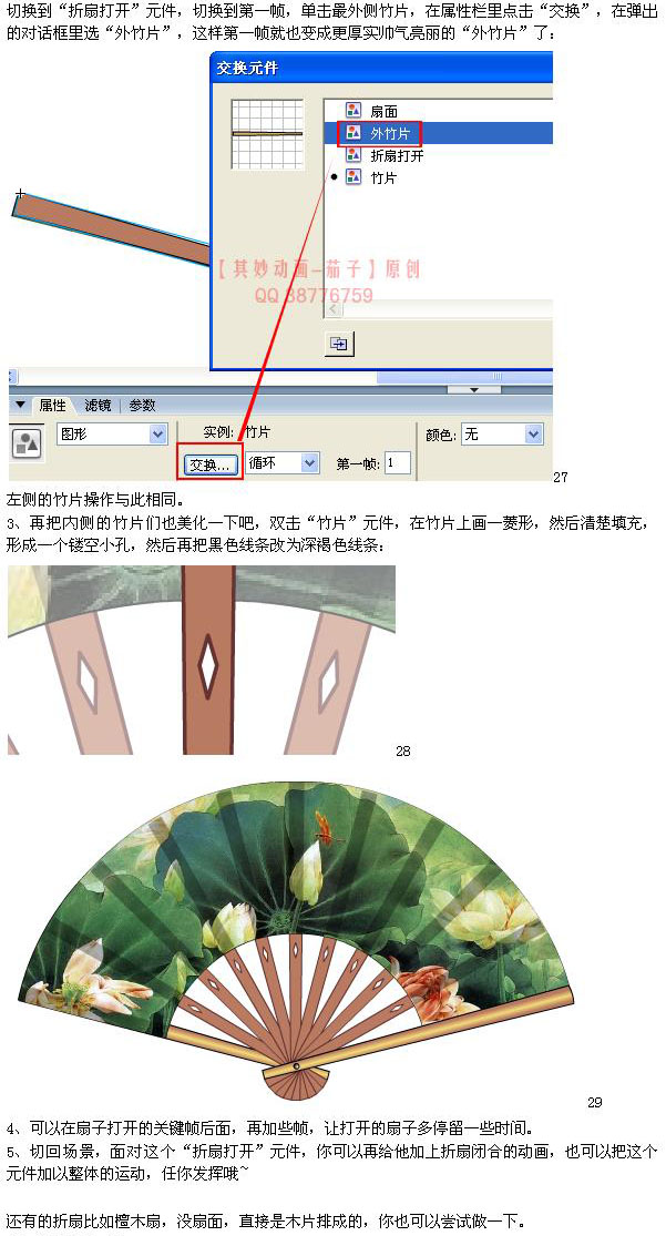 用Flash制作扇子自動打開的動畫步驟如下: