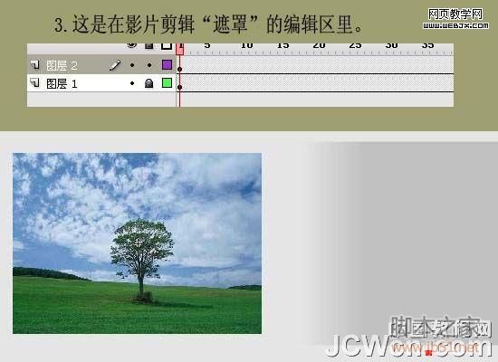 選中矩形,垂直中齊,右鍵轉換為“影片剪輯”,名“遮罩”。用右方向鍵將它右移至圖片左邊對齊,如圖3: