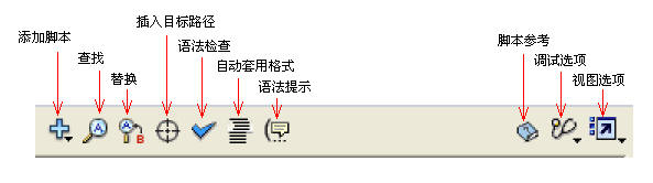 在“腳本”編輯窗口的上面,有一排工具圖標,在編輯腳本的時候,可以方便適時的使用它們的功能。如圖1-2。