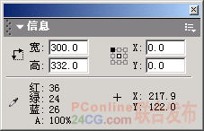 2、按快捷鍵Ctrl F8打開“創建新元件”面板,創建一個名為“影片”的影片剪輯元件。接著在其編輯場景中按快捷鍵Ctrl R導入一張圖片(世貿大樓被“砸”的圖片)。注意,讓圖片的左上角頂點和場景的中心重疊,如圖1所示。可以按快捷鍵Ctrl I打開“信息“面板進行輔助設置,如圖2所示。