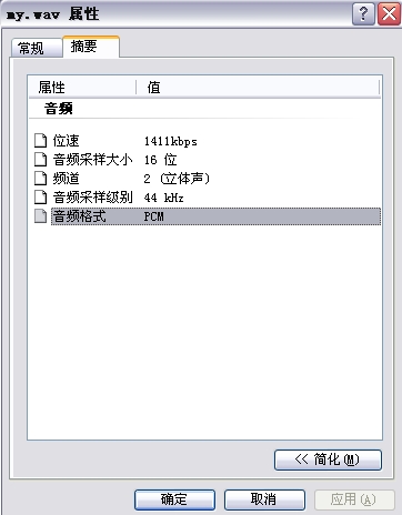用WINDOWS的錄音機錄下一個WAV文件,查看它的屬性,如下圖所示: