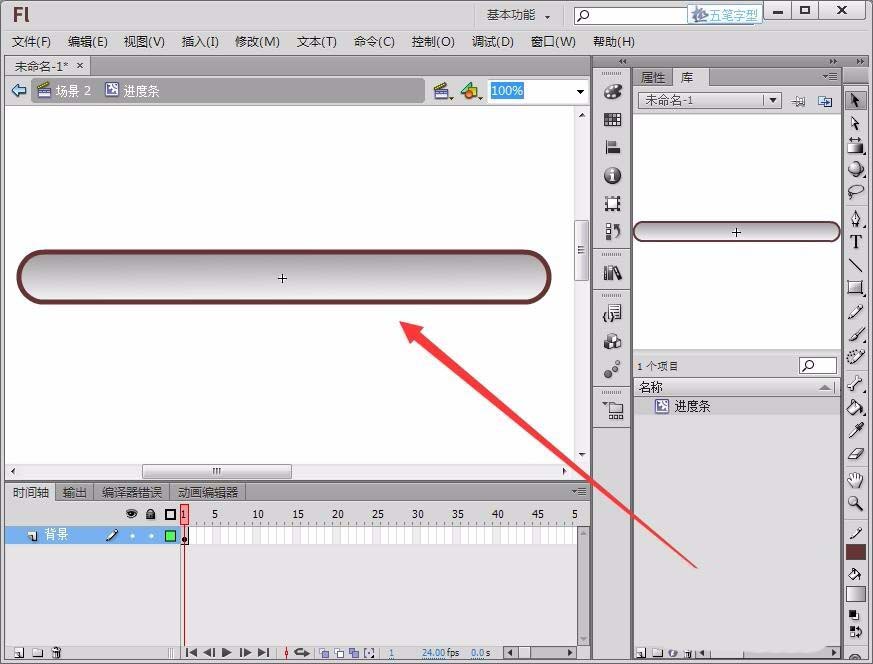 5、在“編輯欄”選擇“基本矩形工具”,在圖層的第1幀根據“進度條”的長度繪制一個圓頭矩形。