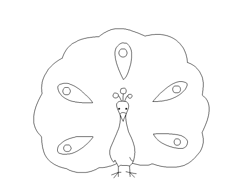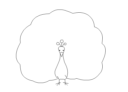 6、再在身體的基礎上畫出孔雀開屏后的尾巴,如圖所示: