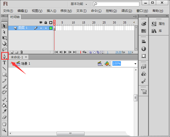2、打開flash之后在其工具箱內找到鋼筆工具,如圖所示: