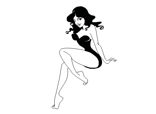 8、最后將美女的頭部及胸部和身體全部填充為黑色,這樣我們的長發美女就畫好了,如圖所示: