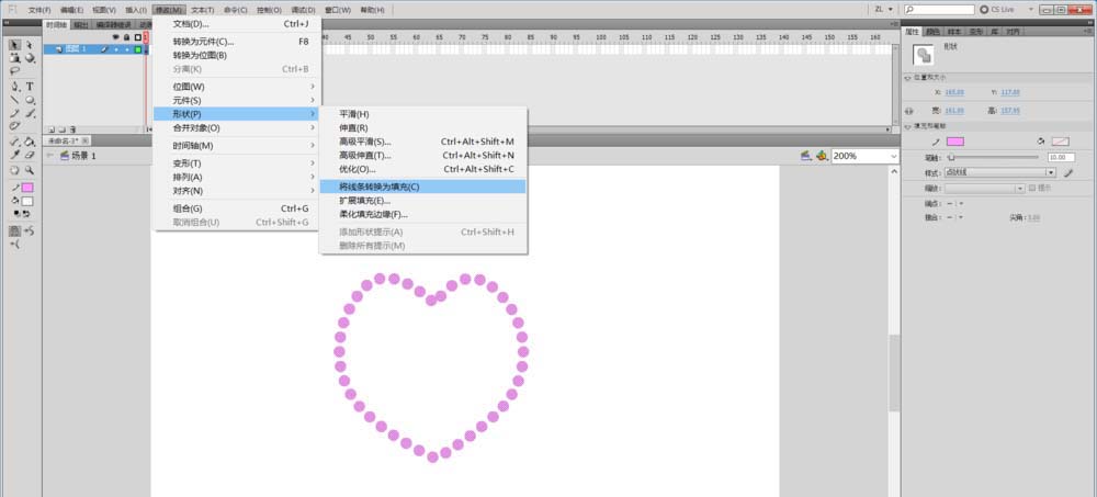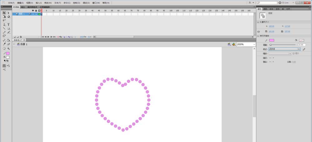 3、調整屬性面板:筆觸10 樣式:點狀線