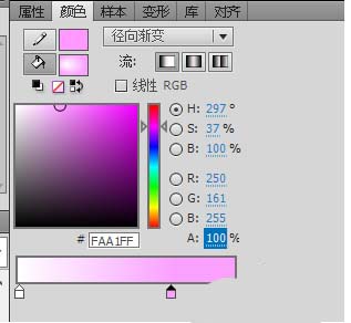5、顏色面板:徑向漸變,顏色由白色至粉紅.