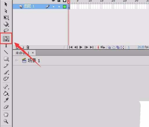 2、打開flash之后在工具箱內找到鋼筆工具,如圖所示: