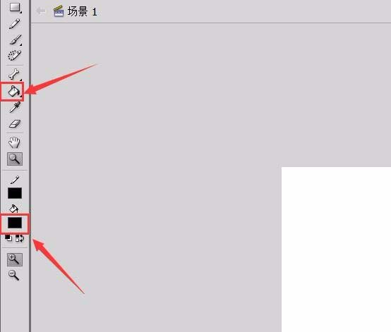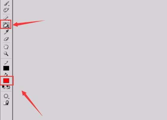 7、繪制好把手之后再在工具箱內找到顏料桶工具,并將顏色設置為紅色,如圖所示: