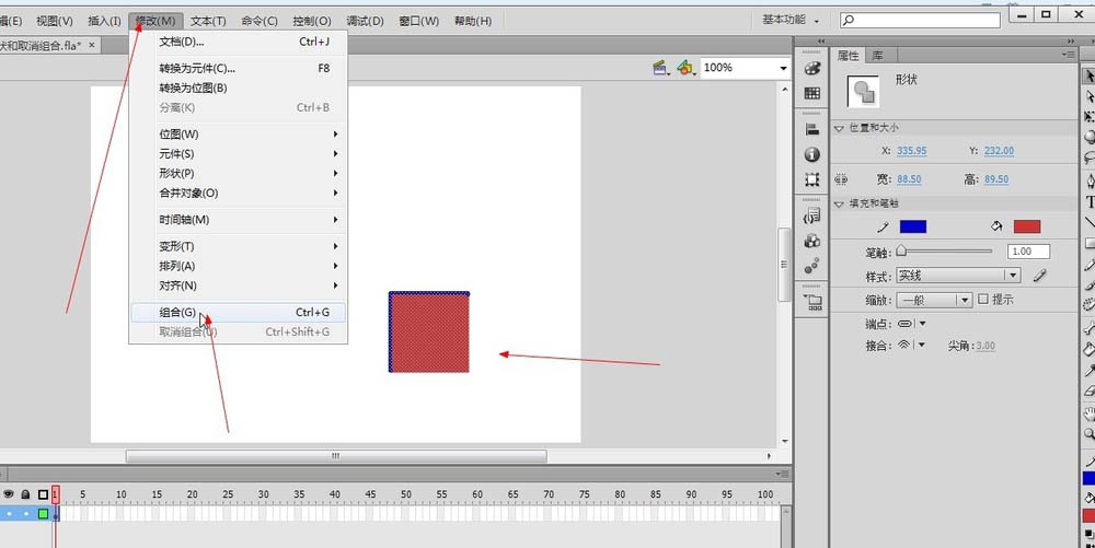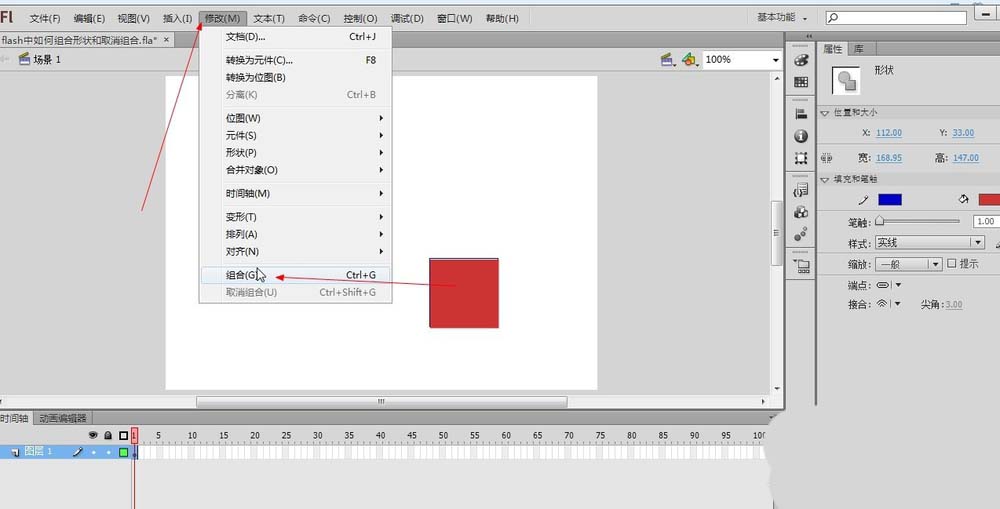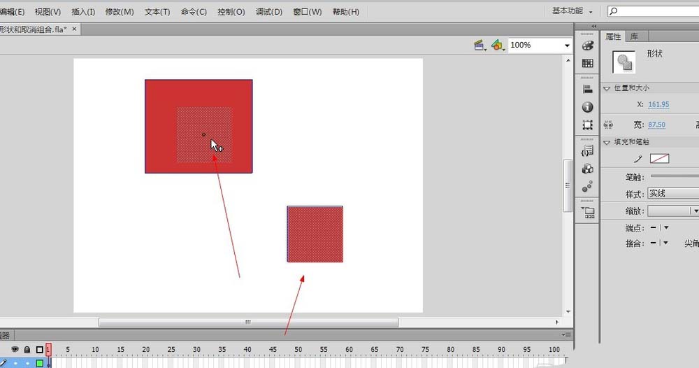 flash中繪制了兩個圖形,如果2個形狀在一個圖層的話,就會造成他們互相影響的情況,比如重疊在一起,再次想移開時就會造成窿空的現象,這時我們就可以將這個形狀組合在一起,這樣就可以避免它們之間在一個圖層互相影響了,當然也可以解散,取消組合,比較簡單的入門教程,請看下文詳細介紹。