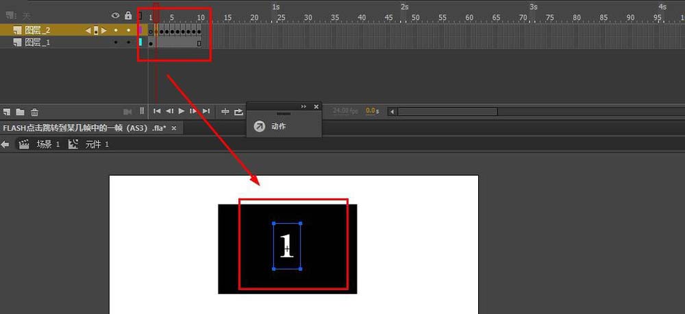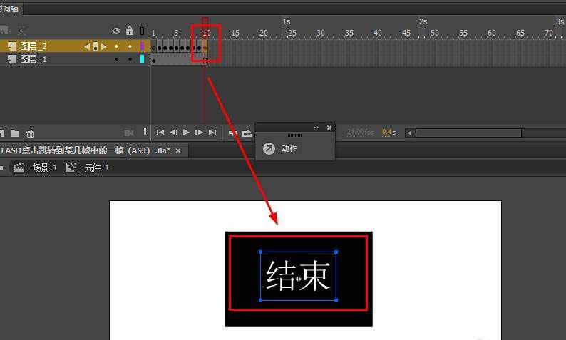 3、影片剪輯的普通幀數為10,從第二幀開始放數字文本框,最后一幀放答題結束。