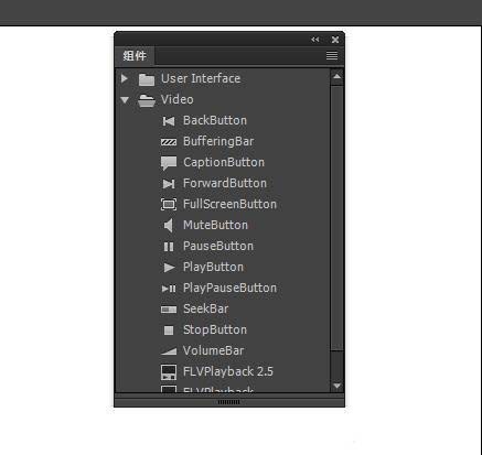 3、可以看到在Animate中,分成兩個(gè)文件夾,一個(gè)是User Interface,主要是按鈕、下拉條等常用組件,一個(gè)是Video是視頻播放相關(guān)的組件,比以前版本不同的是,以前的視頻播放組件沒(méi)有單獨(dú)的。