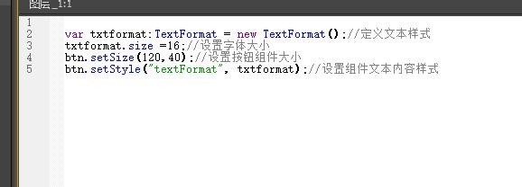 8、可以看到字體有些小,需要使用組件外觀設(shè)置代碼進(jìn)行修改。設(shè)置按鈕的實(shí)例名為btn