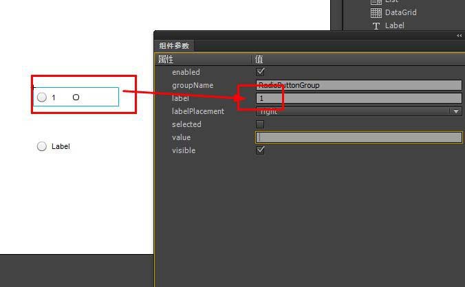 3、依次選擇四個(gè)組件,設(shè)置參數(shù)中Label為1,3,5,8