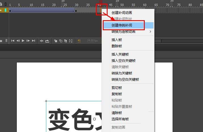 7、在30幀前和30幀后右鍵選擇創建傳統補間