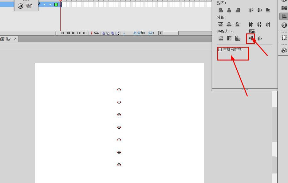 6、返回舞臺,復制幾個元件并進行平均排列。
