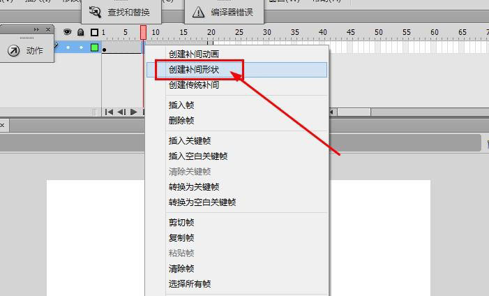 5、在中間幀右鍵選擇補間形狀動畫,成功轉換為形狀動畫