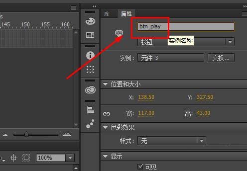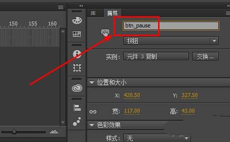 4、設(shè)置播放按鈕的實(shí)例名為btn_play,設(shè)置暫停按鈕的實(shí)例名為btn_pause