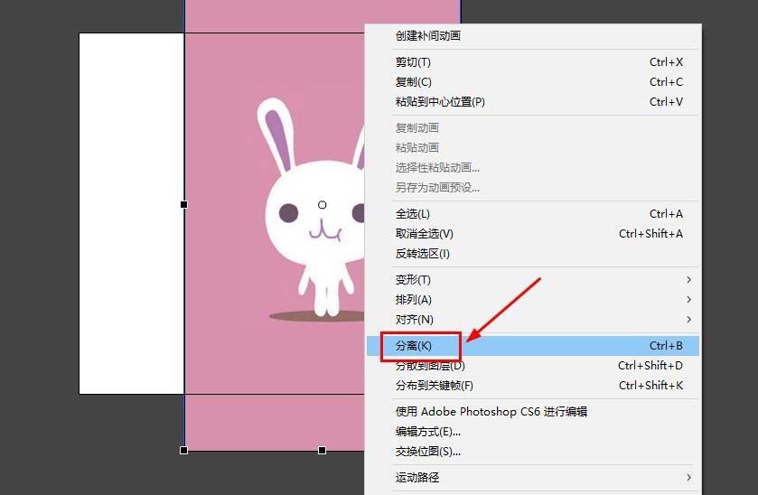 3、選擇圖片,右鍵選擇分離或者使用快捷鍵Ctrl+b,這步是肯定要有的,否則無法使用套索工具。