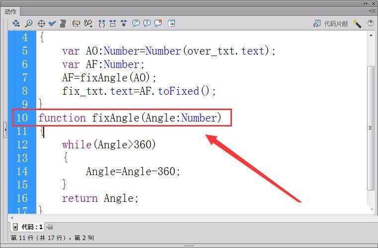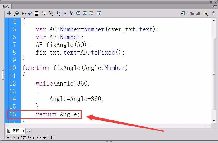 9、最后,定義函數fixAngle,實現大于360度角轉換為360度以內。