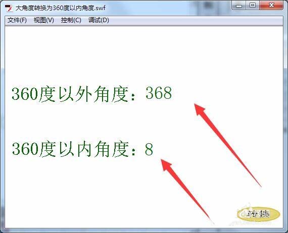 12、運行程序,輸入需轉換的角度后,單擊“轉換”按鈕,就在舞臺輸出轉換后的角度值。