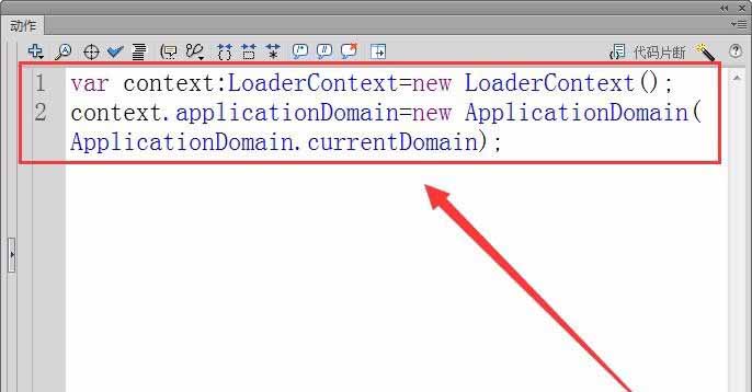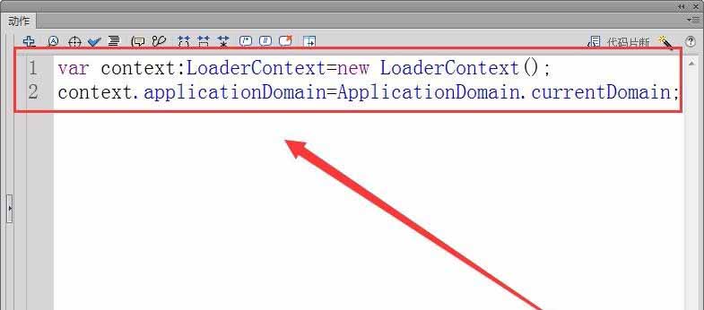 1、把外部swf文件加載到同域,即和主程序同一個位置的區域。如果在同域和主程序中有相同的類定義,則忽略同域的類定義,使用主程序中的類定義。它使用的代碼如下圖所示。