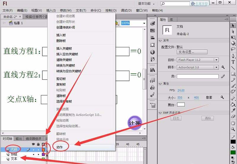 flash中想要輸入兩條直線方程式,計算出交點,該怎么實現呢?下面我們就來看看詳細的教程。