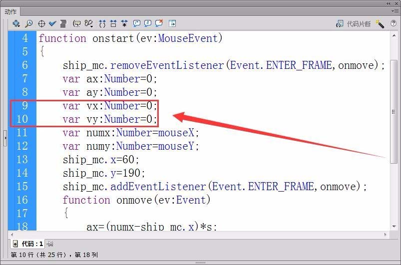 8、定義浮點型變量vx和vy為輪船的速度,初始值為0。
