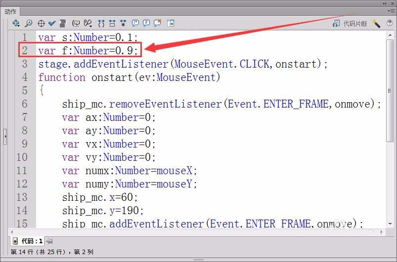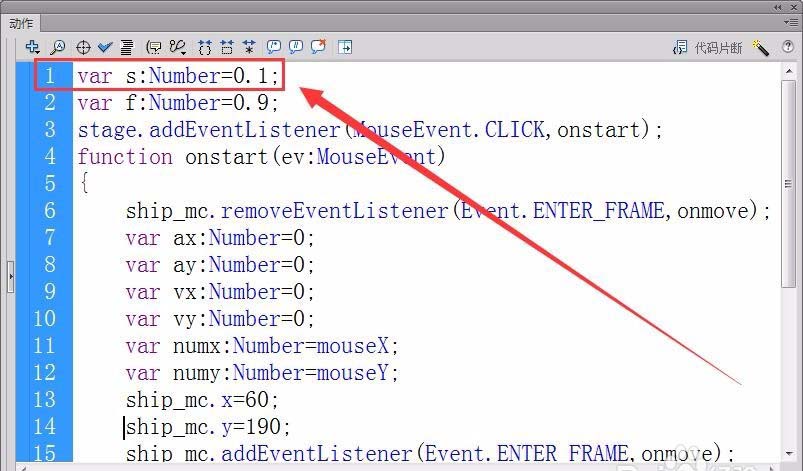 2、新建代碼圖層,打開動作面板。首先,定義一個初始變量s,做為縮小速度的系數(shù)。