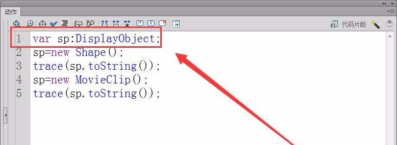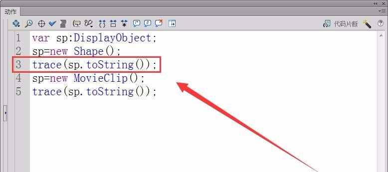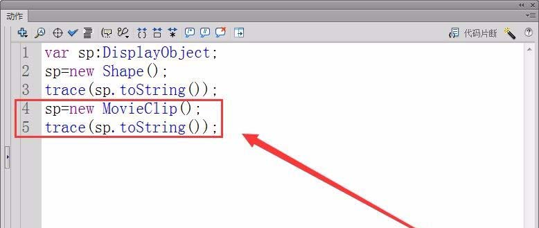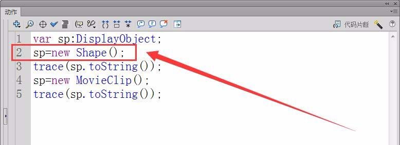 5、用上兩步同樣的方法,創(chuàng)建一個(gè)影片剪輯實(shí)例,用變量sp引用它,并在舞臺(tái)輸出它的實(shí)例信息。