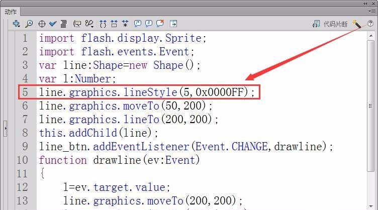 5、設置所繪制線條的寬度和顏色,寬度為5,顏色值為0x0000FF。