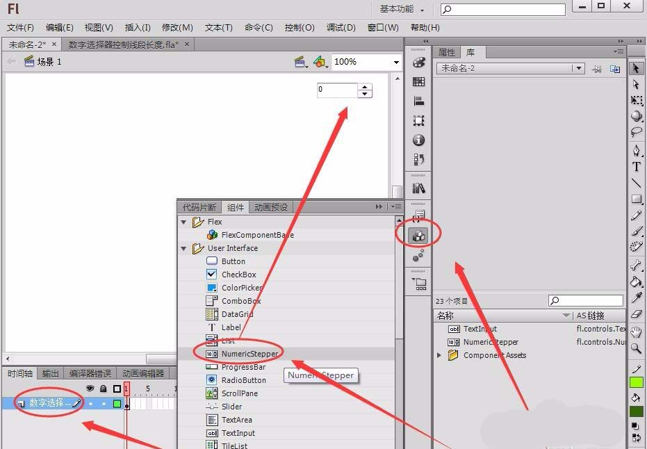 1、新建一個數字選擇器圖層,將NumericStepper元件拖動到舞臺合適位置。
