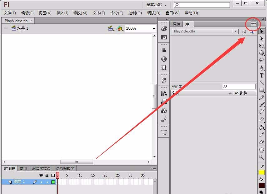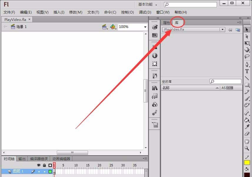 新建一個空白Flash文檔,將它保存在桌面中,打開“庫”面板。