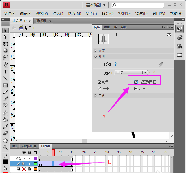 flash怎么制作一個簡單飛機飛行的引導層動畫?