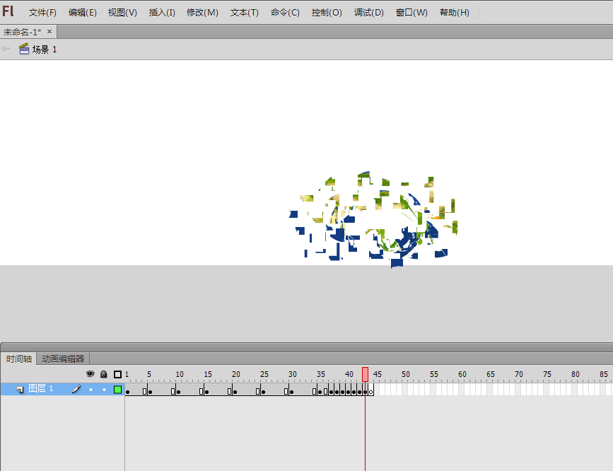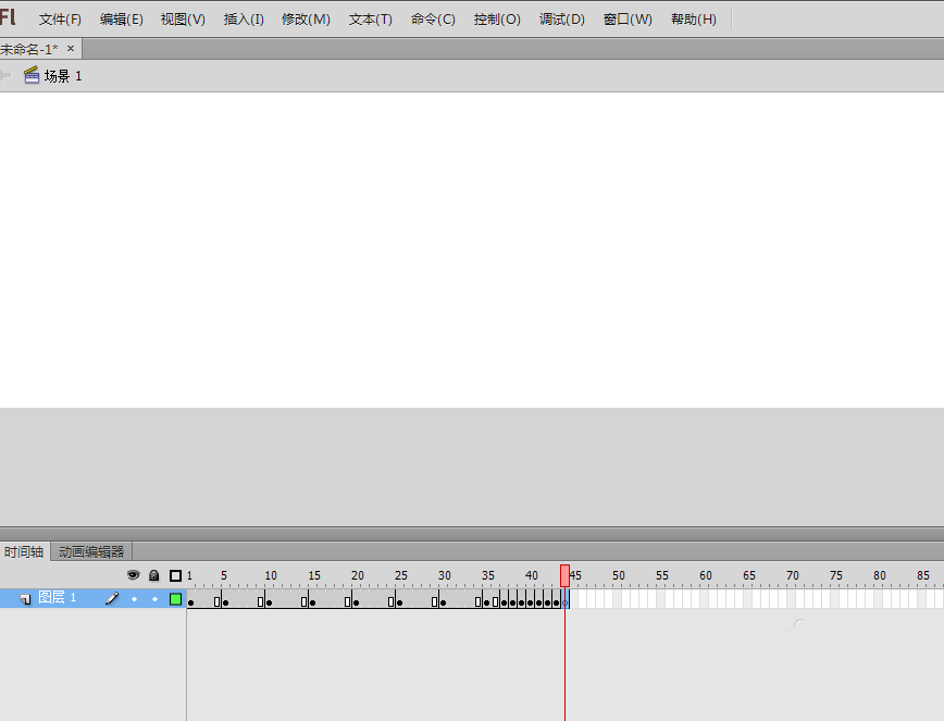 5、第44幀因?yàn)闆]有任何內(nèi)容為空白關(guān)鍵幀,第45幀之后為沒使用的幀。