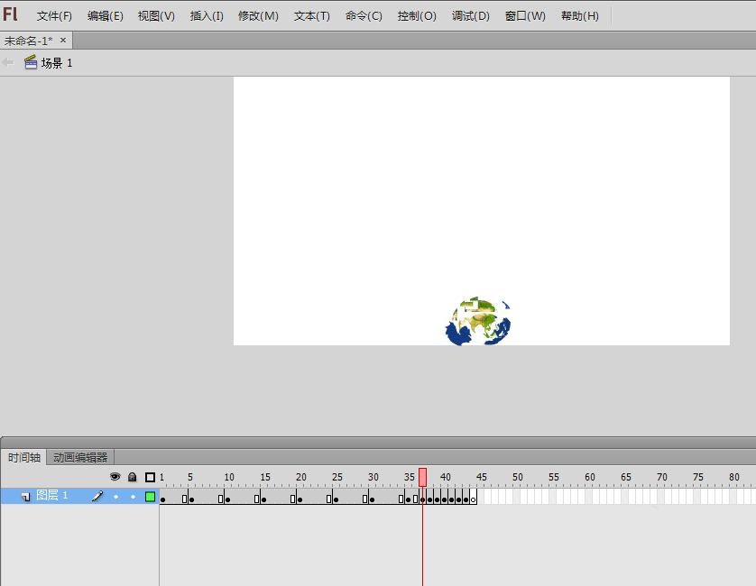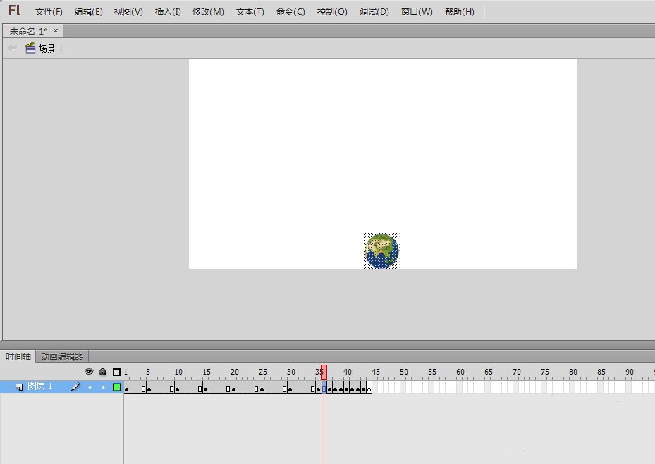 6、選擇控制-測試影片-在Flash中測試影片,小小的地球從高出落下,在地上摔成碎片。