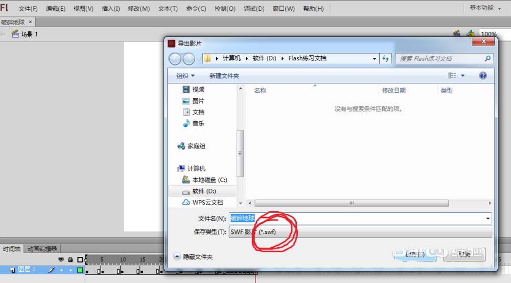 8、文件-導(dǎo)出格式,破碎地球?yàn)?swf文件,此種格式不可編輯狀態(tài)。