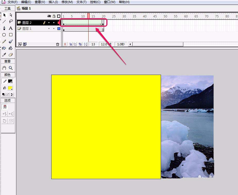 8、為“矩形遮蔽”圖層中的矩形制作一個圖形補間動畫。