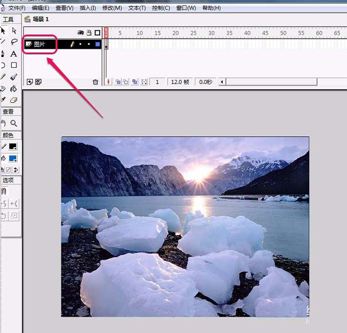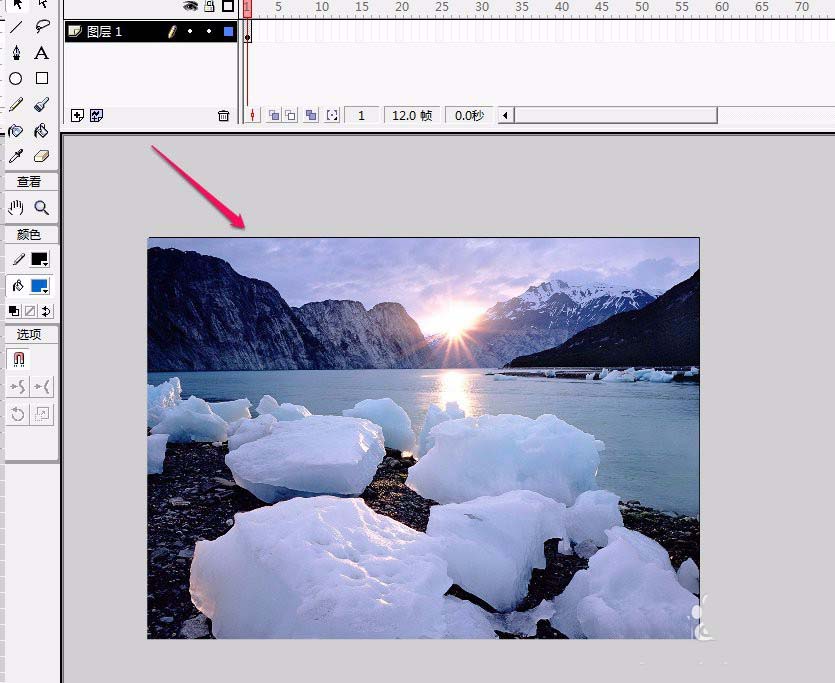 2、我們在舞臺上導入一張圖片。