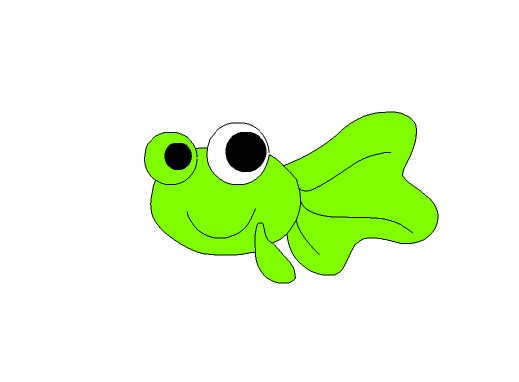 7、先將小金魚的眼睛填充為黑色,然后在設置填充色為綠色,將小金魚的身體和左眼填充為綠色,這樣我們的綠色小金魚就繪制好了,如圖所示:
