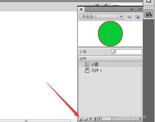 5、界面上出現庫的面板,點擊面板左下角的新建元件按鈕。
