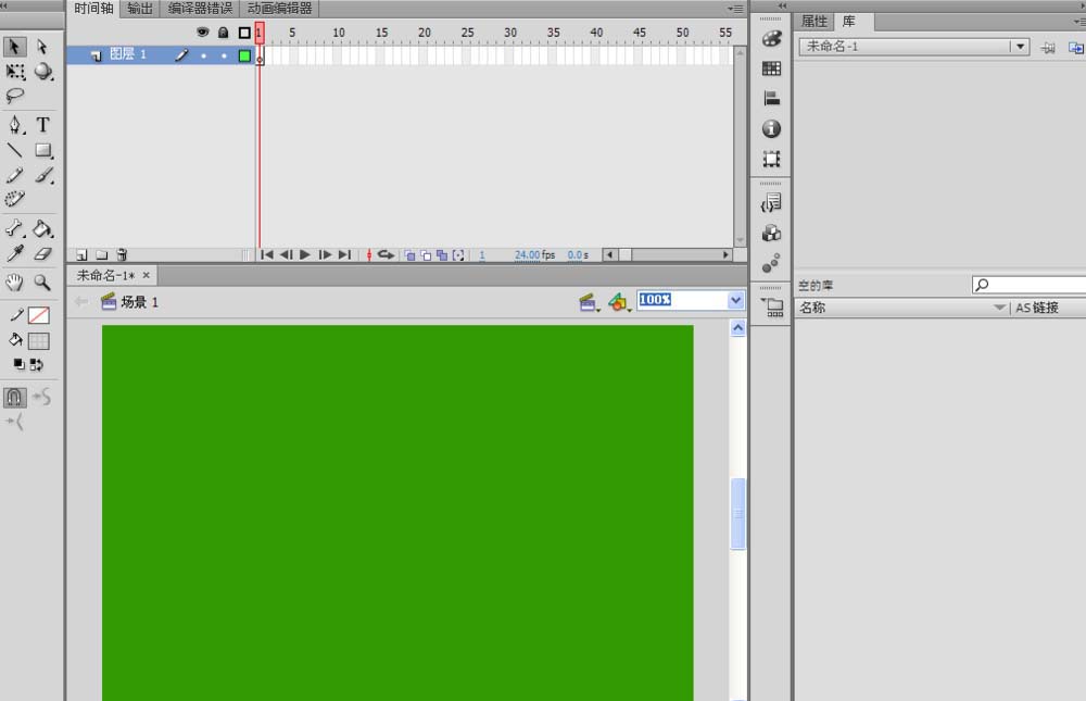 1、打開或新建一個空白的FLASH文檔,設(shè)置一種背景色(這里我設(shè)置為綠色)