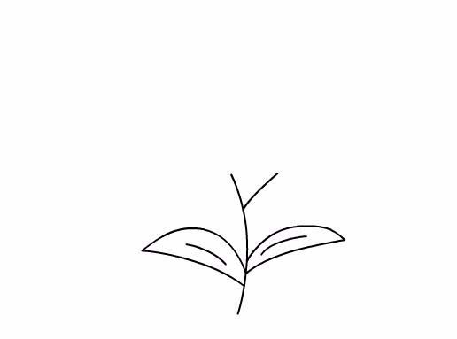 2、在使用鋼筆工具在主花莖的兩側畫出雞冠花的兩片葉子及葉脈紋理,如圖所示: